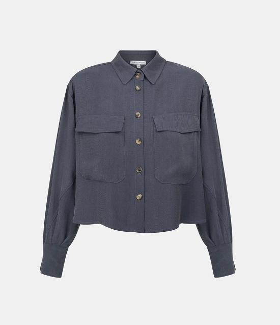 Koszula damska ALL IN ALL o luźnym fasonie to połączenie elegancji z nonszalanckim, swobodnym stylem. Guziki rogowe na przodzie i w mankietach dodają jej oryginalności, a kieszenie z klapami militarnego stylu. Wykonana z bardzo przyjemnego materiału, będącego połączeniem cupro i wiskozy ecovero.